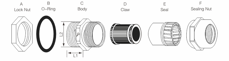 Model | Cable Range (mm) | Thread O.D L2(mm) | Thread Length L7(mm) | Spanner Size A&E(mm) |