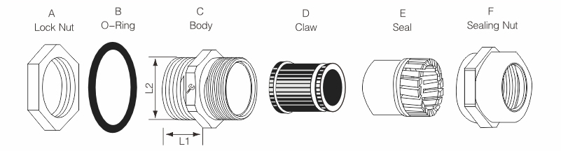 Model | Cable Range (mm) | Thread O.D. L2(mm) | Thread Length L7(mm) | Spanner Size A&E(mm) |