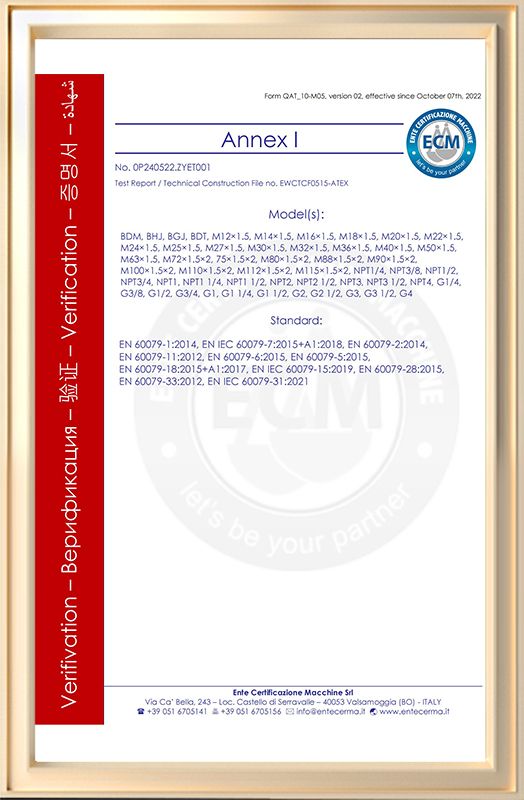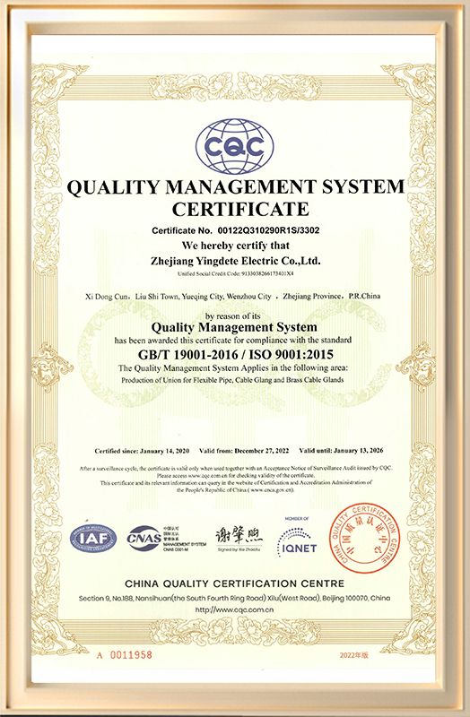 At YDT, we are dedicated to providing you with the highest quality cable glands and cable protection products, backed by stringent certifications and adherence to industry standards. Take a look at our certifications related to our company, quality, research and development, and other relevant certifications.