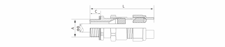 Made ofhigh-quality brassnickel plated or stainlessteel, the displacement cable clamping devicehasstrong waterproof performance,asingle-layersealingstructurewith filler, andathreaded interface attheinletend,suitablefor introducingarmored cables.